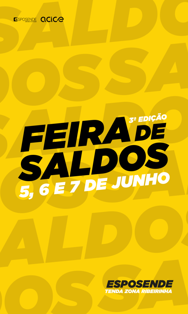 A ACICE, em parceria com o Município de Esposende, vai realizar a Feira dos Saldos nos dias 5, 6 e 7 de junho de 2026. O evento terá lugar no Parque Radical, próximo às piscinas, numa tenda fechada com as dimensões de 30m x 15m, a ser instalada para esse fim.